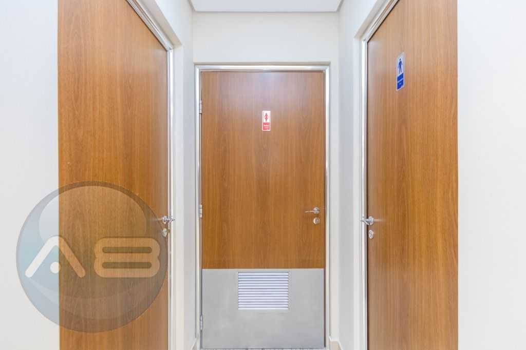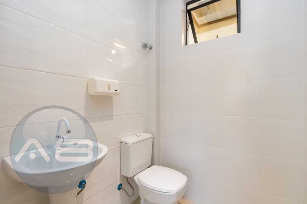 Piso porcelanato em toda área de escritório, banheiros;