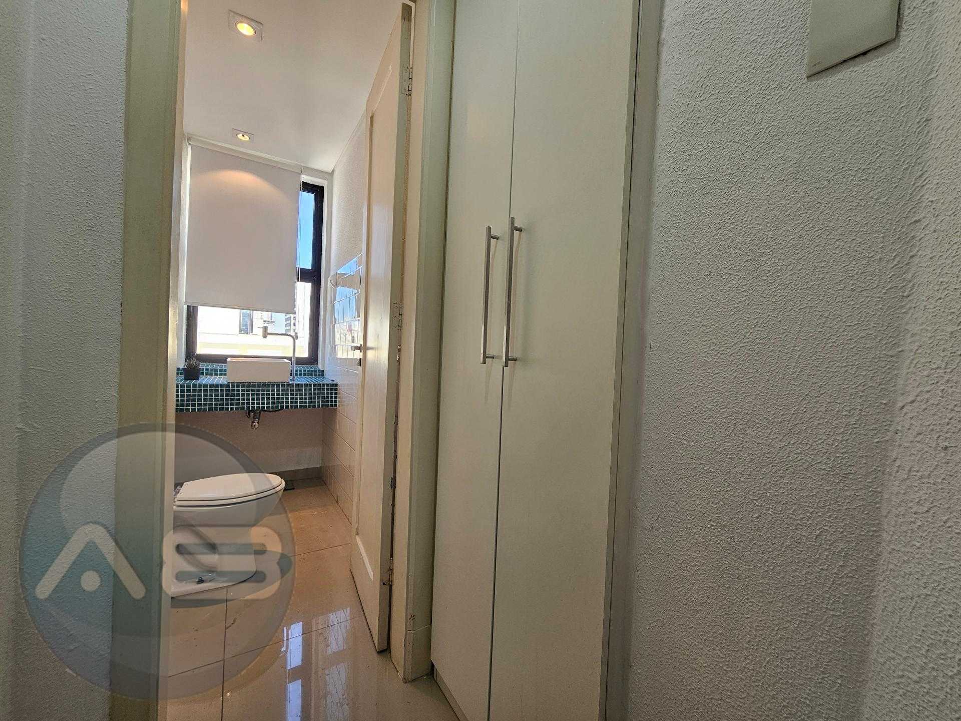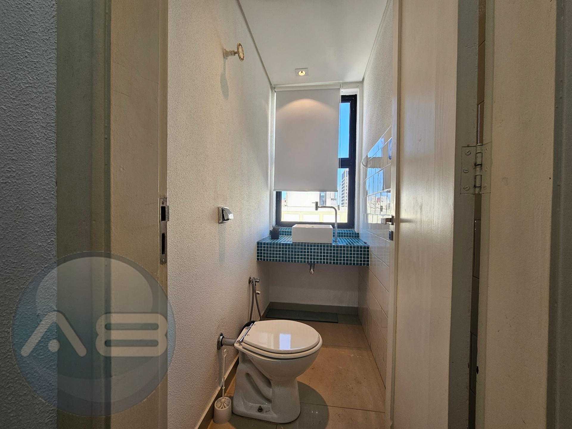 01 banheiro com armário para material de limpeza
