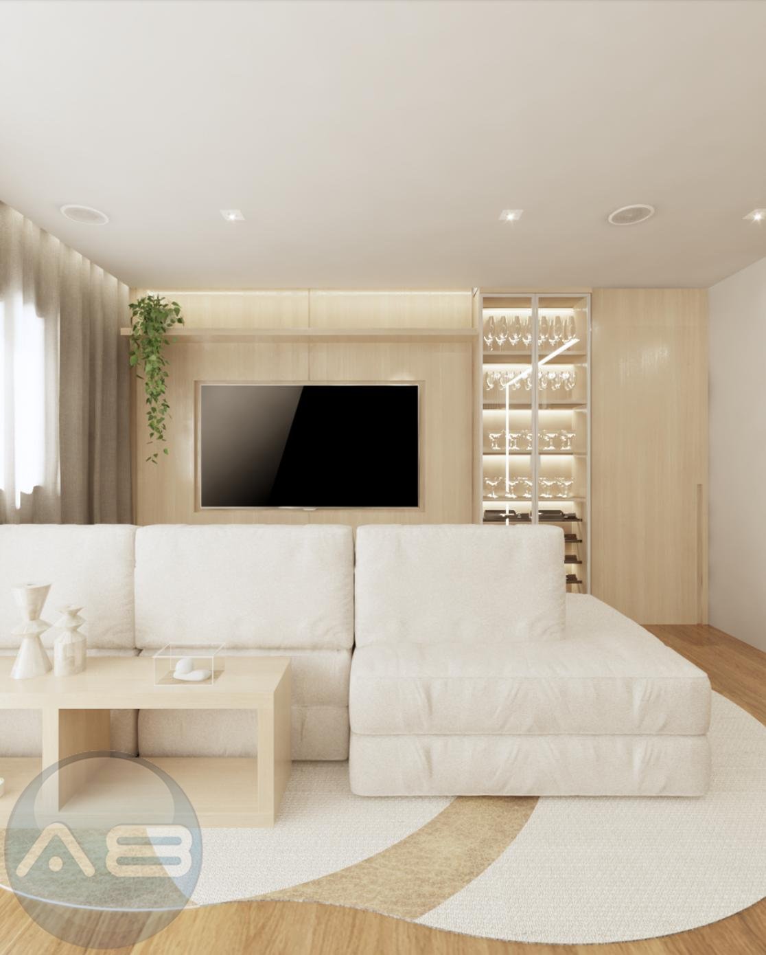 Painel ripado com cristaleira iluminada