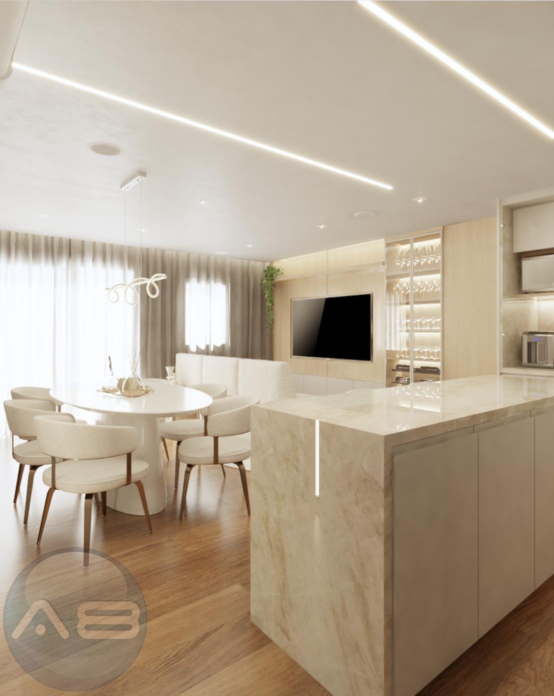 Cozinha com ilha e acabamentos premium