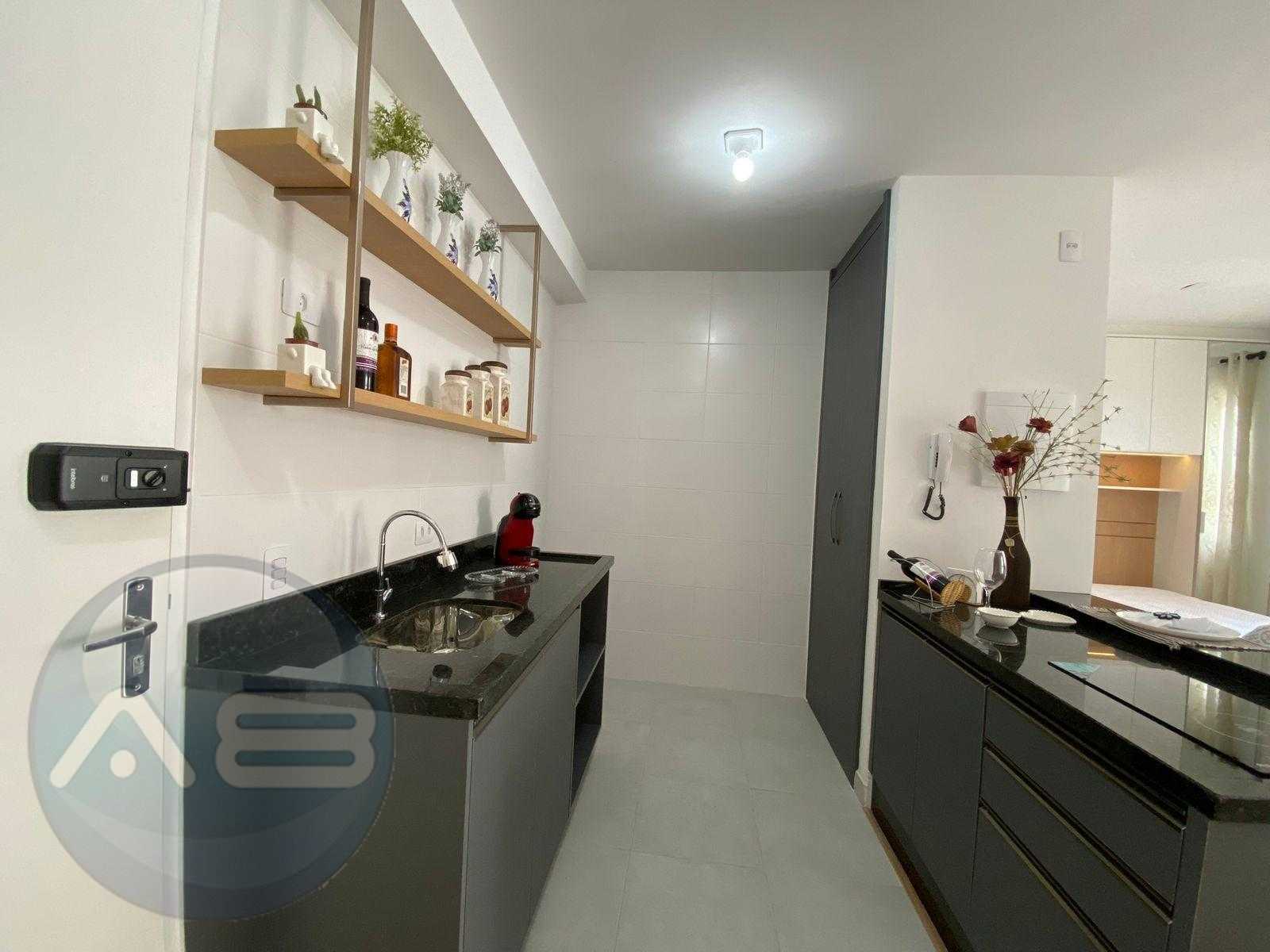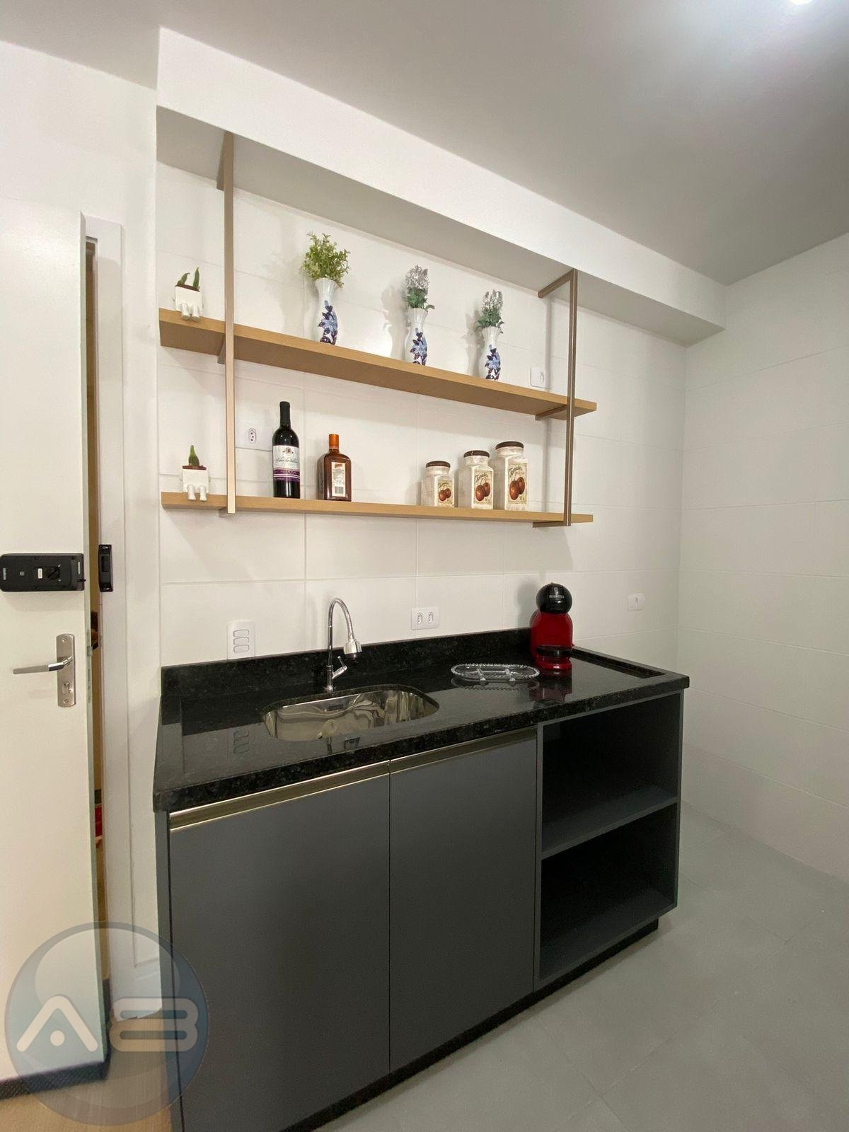 Cozinha montada com armário e pia.