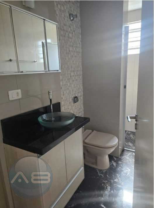 Banheiro com armário e box em vidro