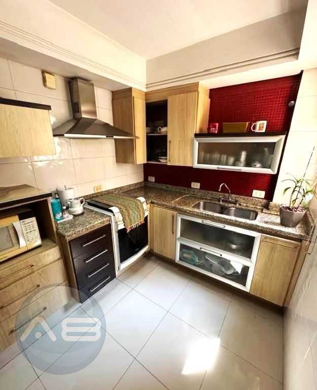 - Cozinha com armários e coifa.