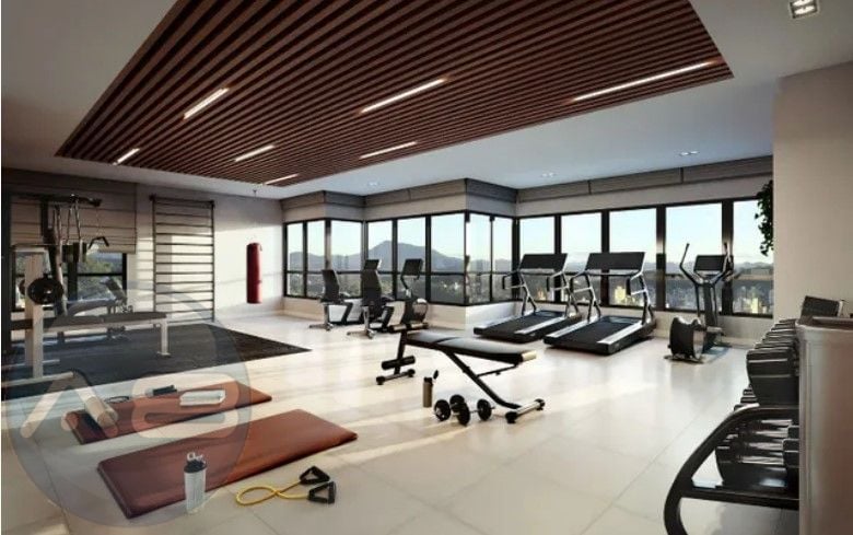 Academia completa, equipada para treinos funcionais e musculação.