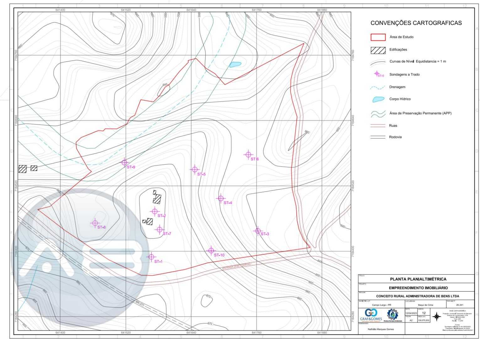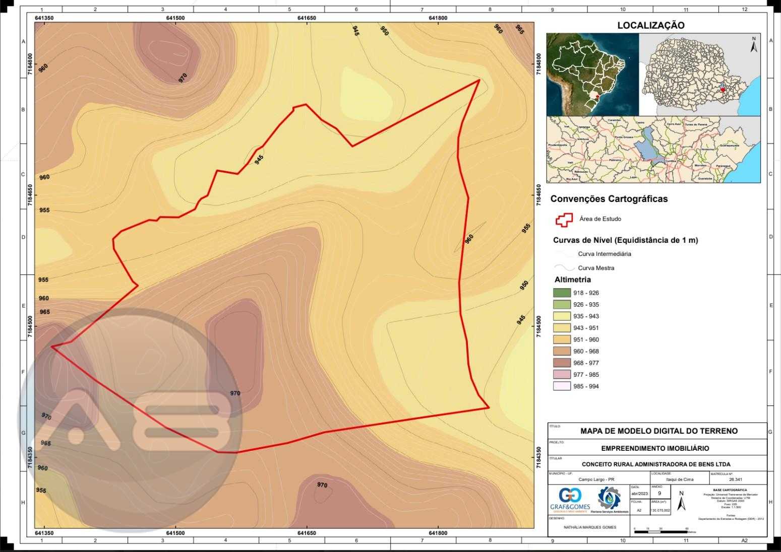 Estudos técnicos realizados: Hidrogeológico, Planialtimétrico e Florístico.