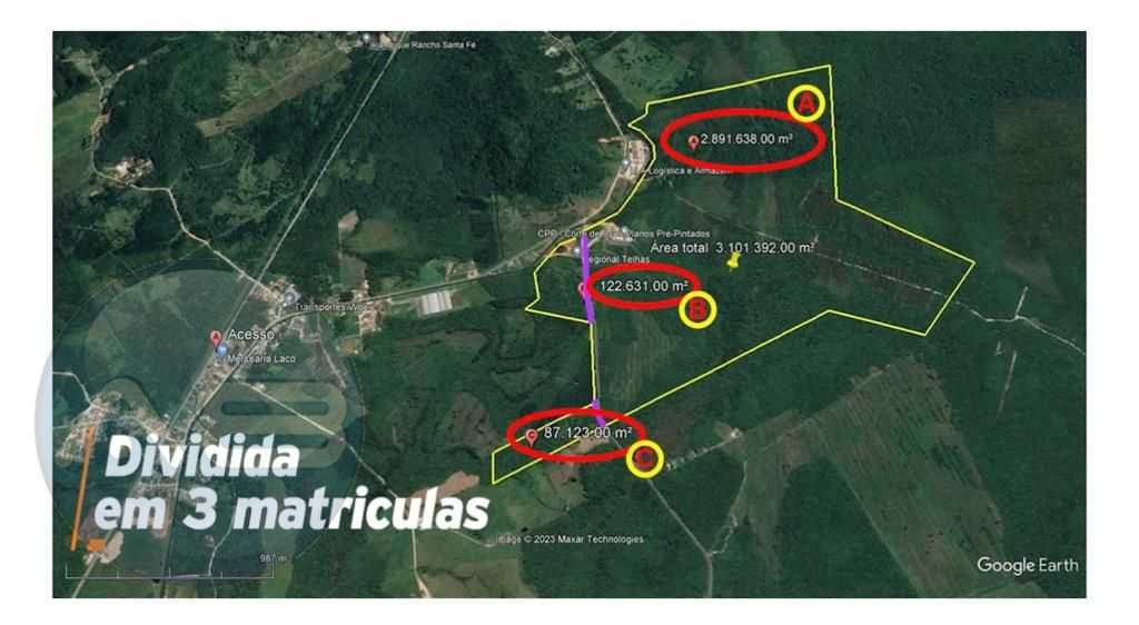 Área total de 3.101.392,00 m2 no Distrito Industrial de São Francisco do Sul/SC, Acesso pela BR-280, Rodovia Olívio Nóbrega e Rede Ferroviária até o Porto.
