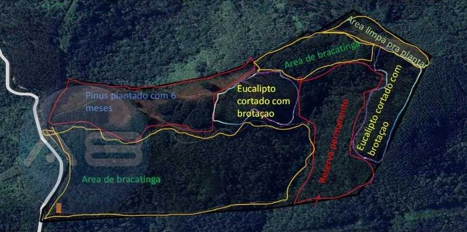 Plantação consolidada: O terreno conta com 7.000 pés de pinus e 16.000 pés de eucalipto, garantindo rendimento imediato e potencial de valorização a médio e longo prazo;