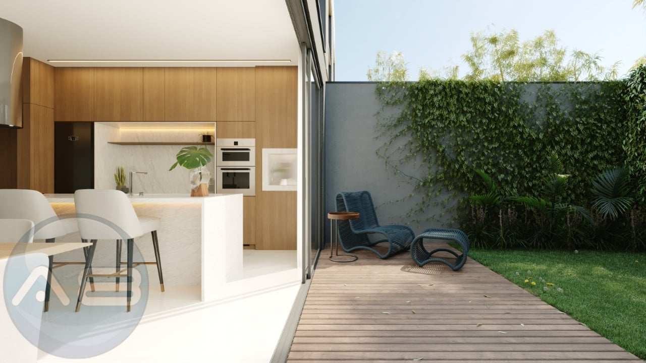 Primeiro Pavimento: Living/sala de estar integrada com área gourmet e jantar, conceito aberto com acesso ao garden privativo proporcionando um visual natural com a tranquilidade esperada por quem escolhe esse tipo de imóvel.