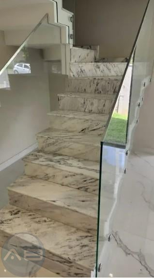 Escada em mármore e guarda-corpo em vidro