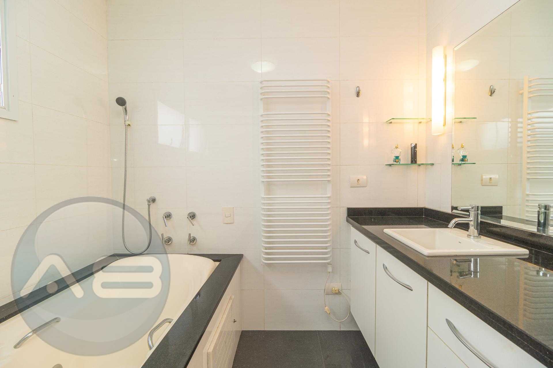 Banheiro generoso com banheira