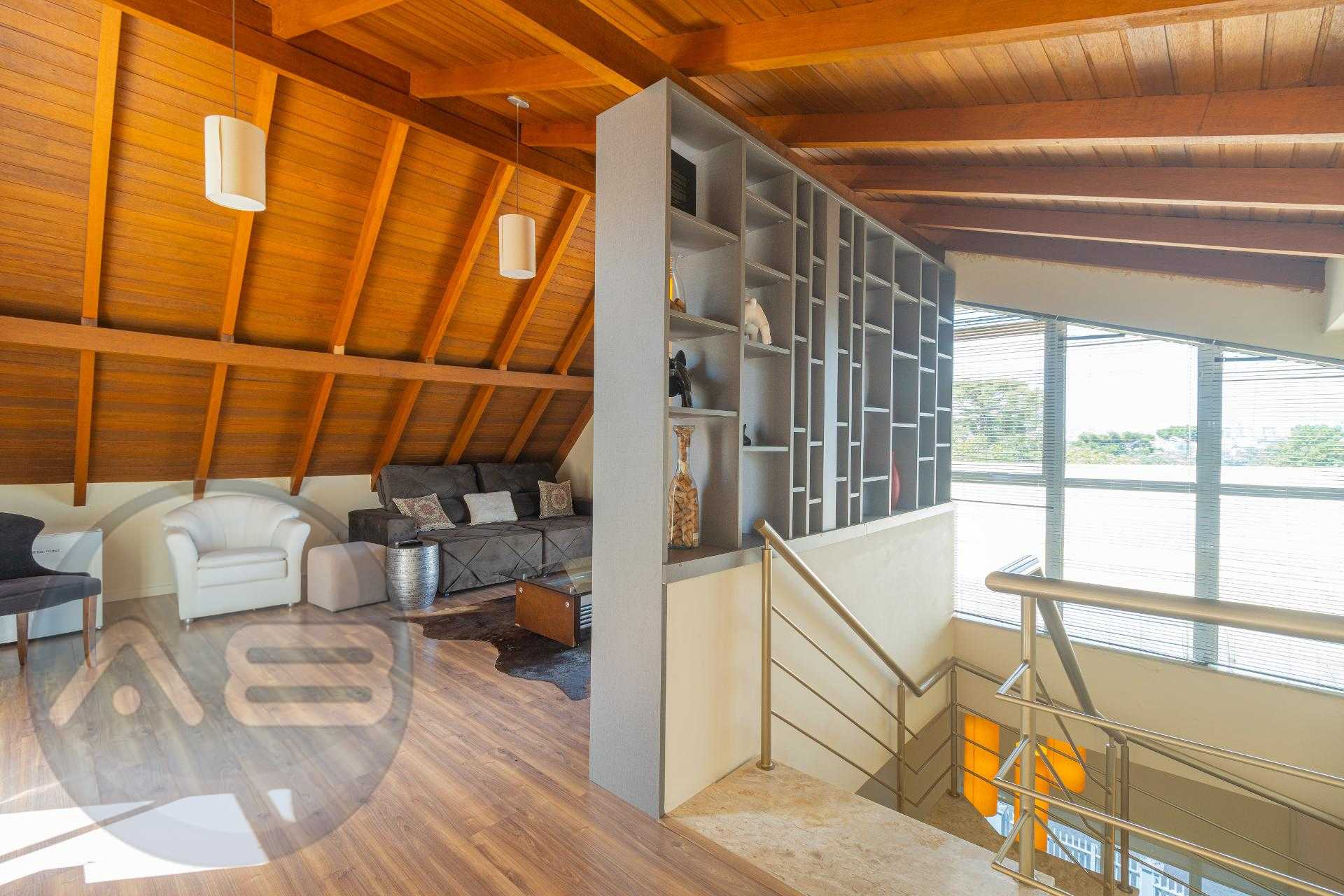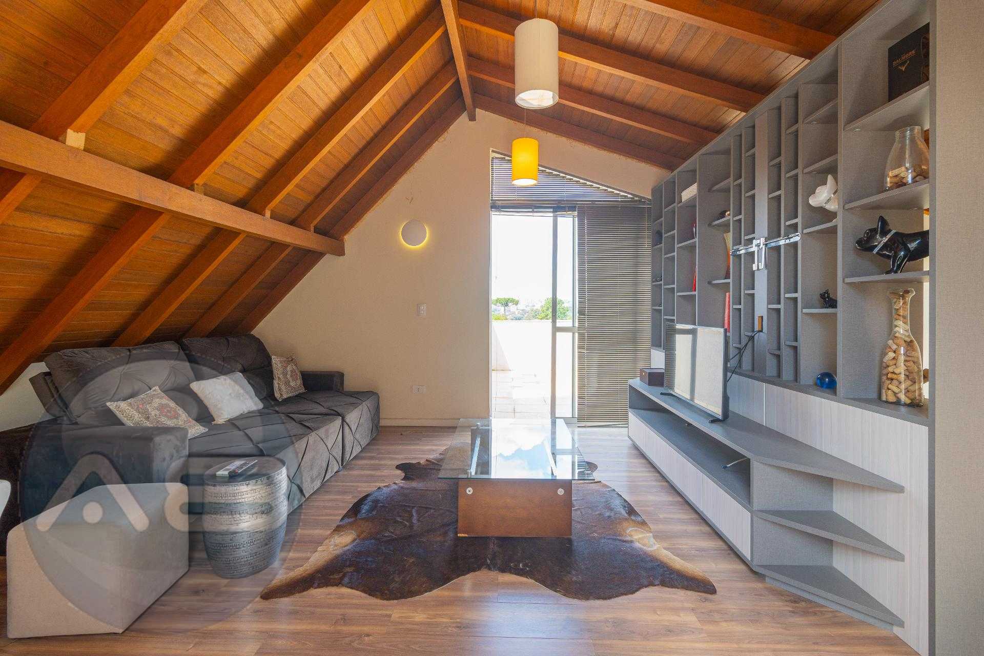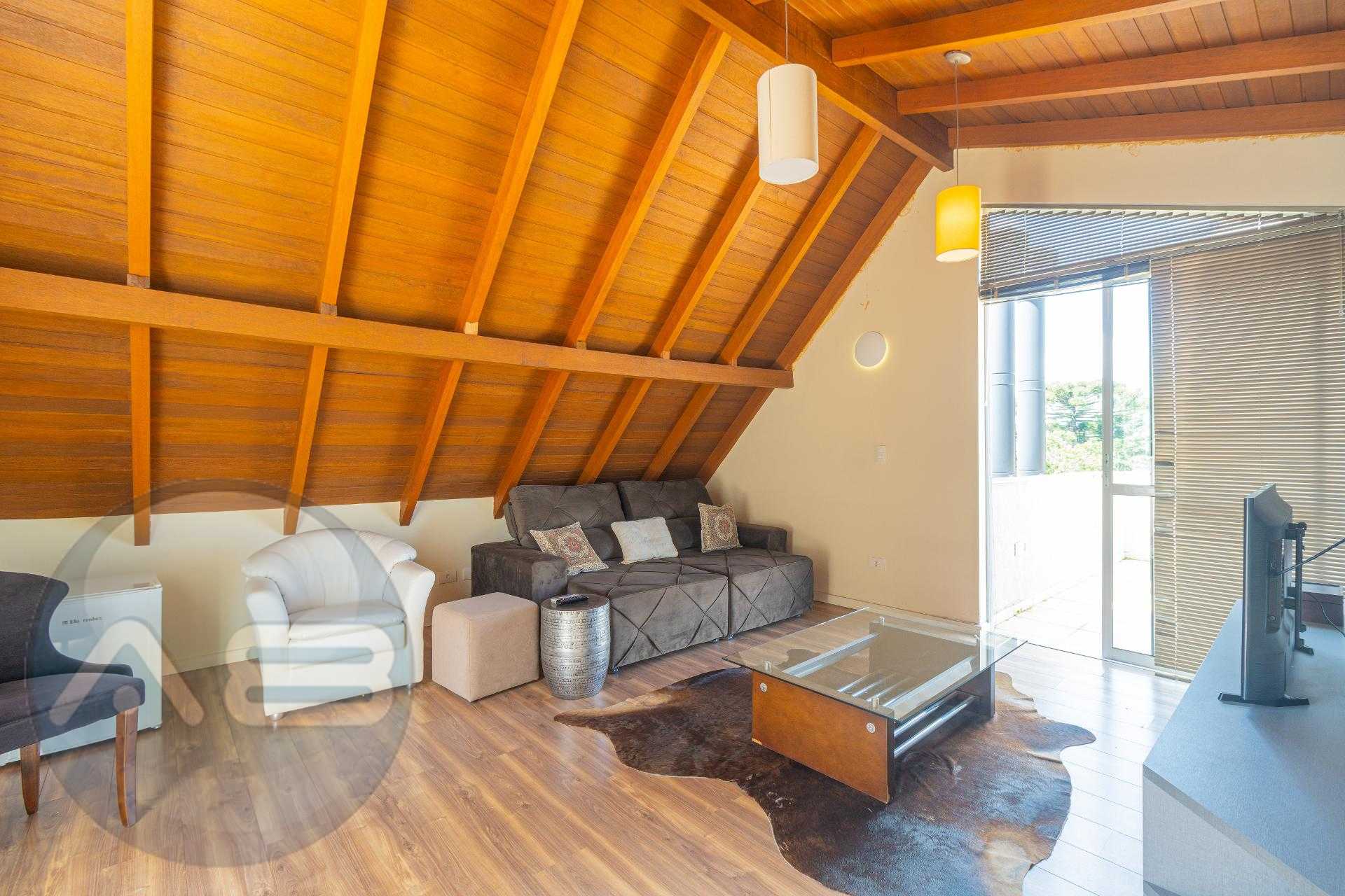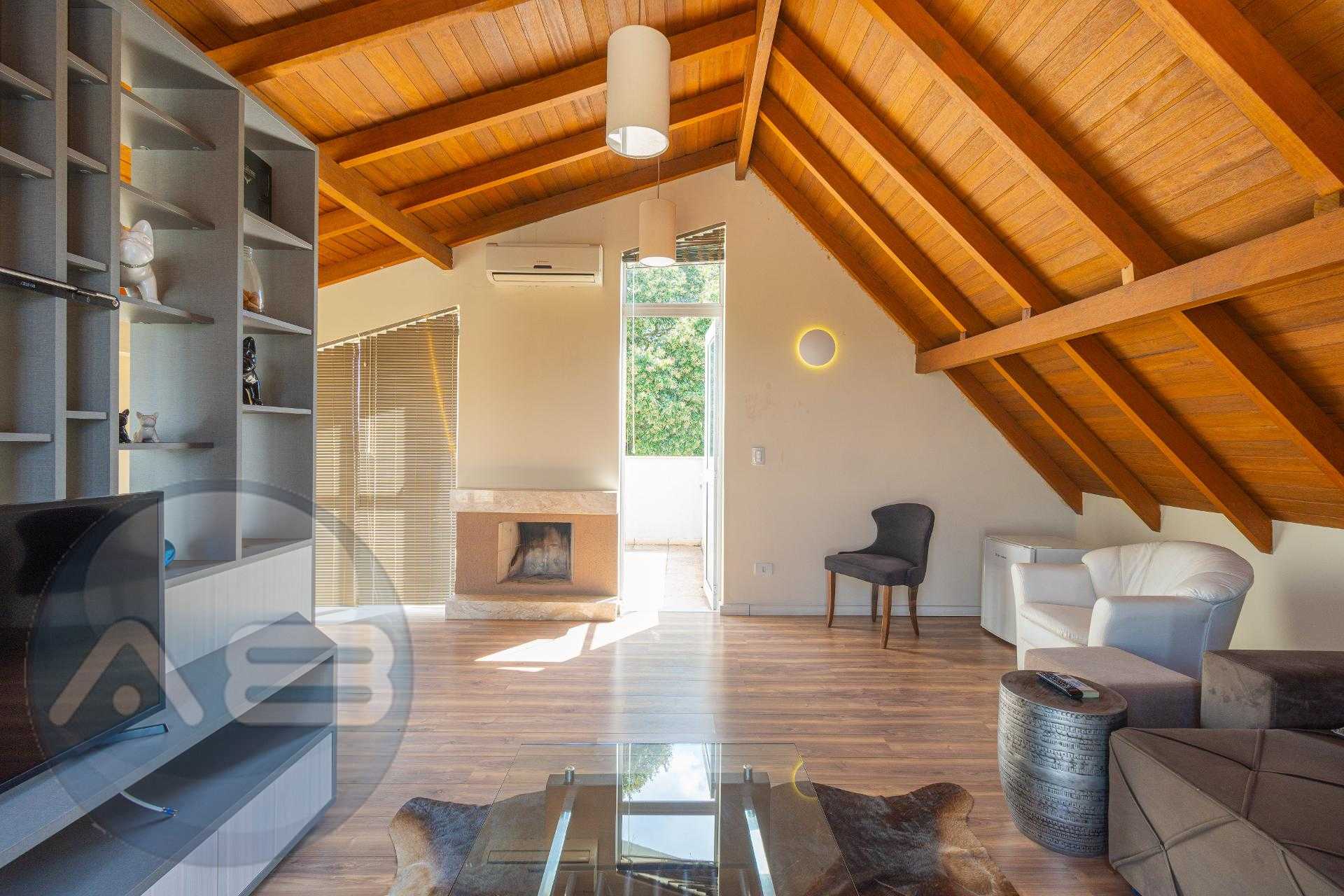 O ático é amplo, climatizado, possui lareira e sacada com linda vista. Um espaço extremamente versátil que pode ser utilizado como: