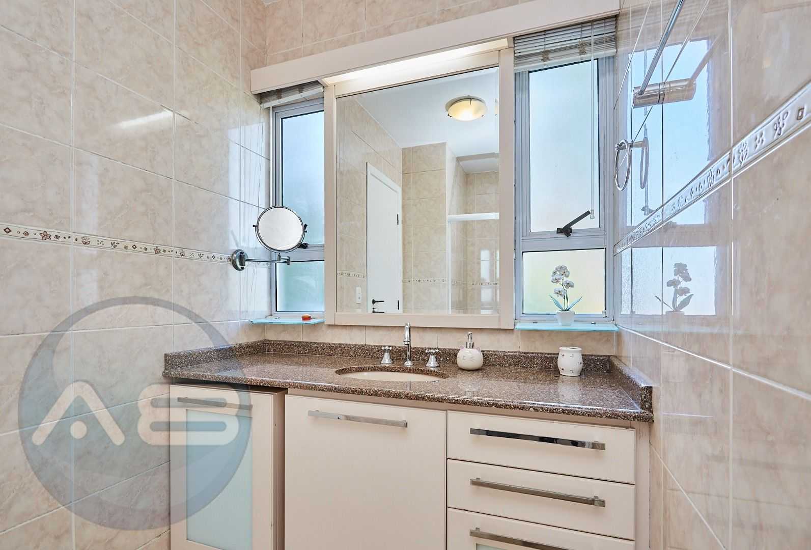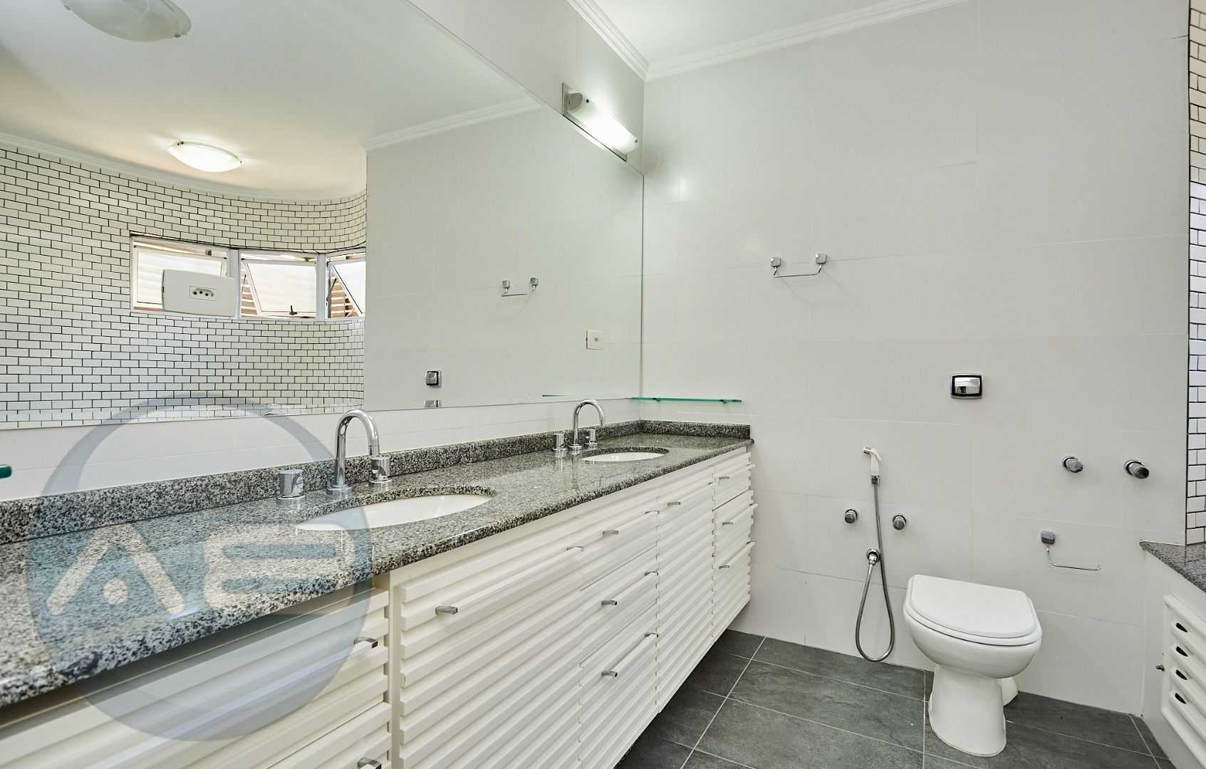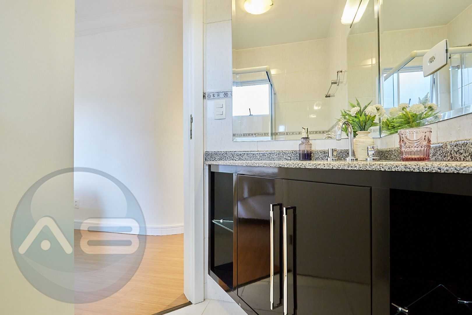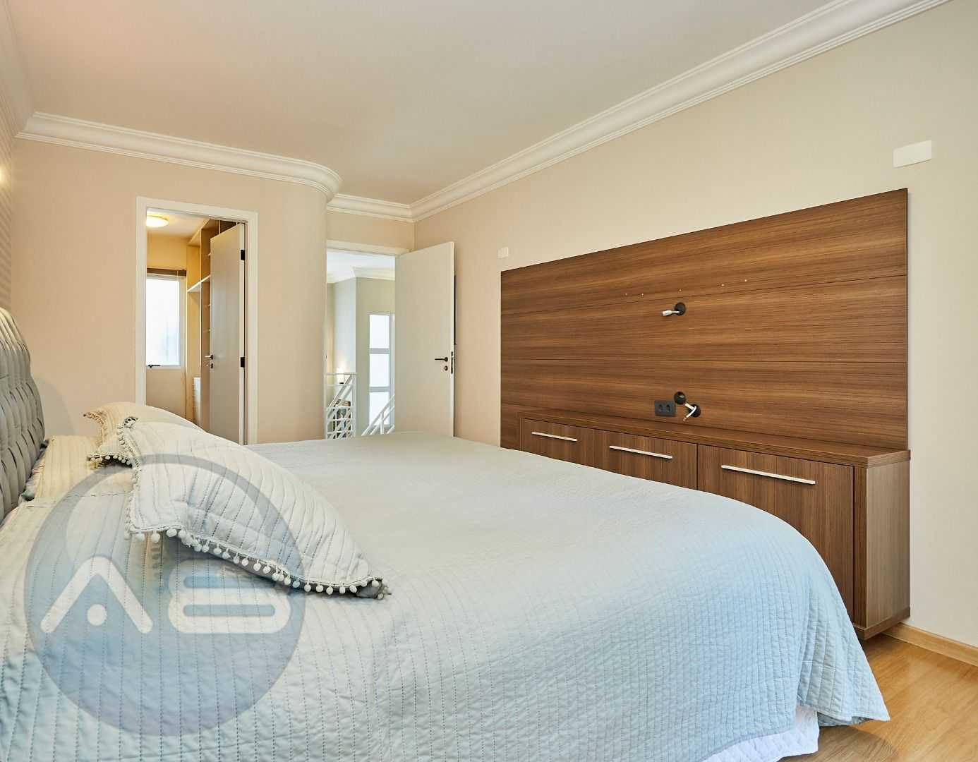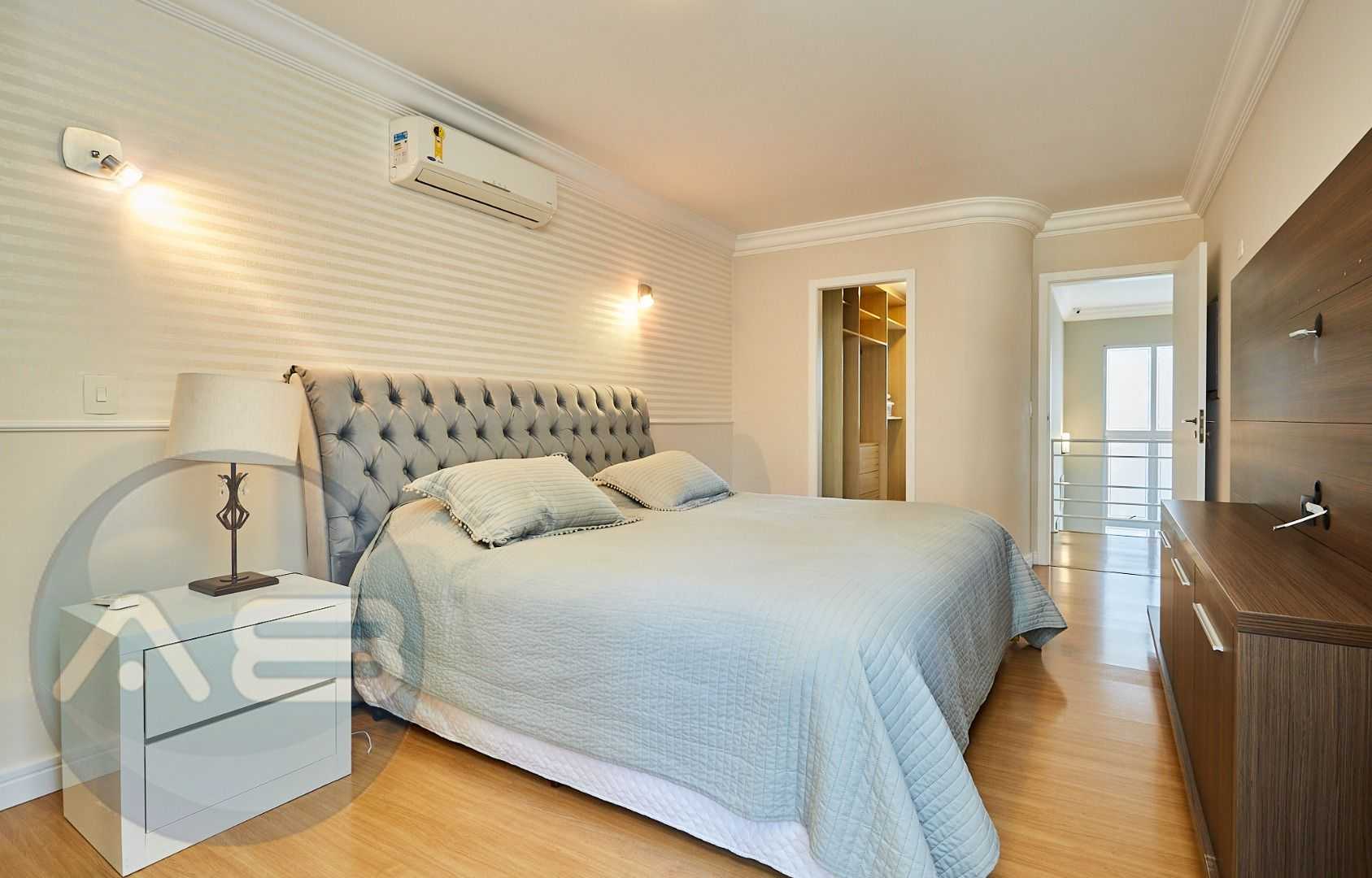 Suíte master exclusiva: amplo closet, banheiro com hidromassagem e bancada com cubas duplas.