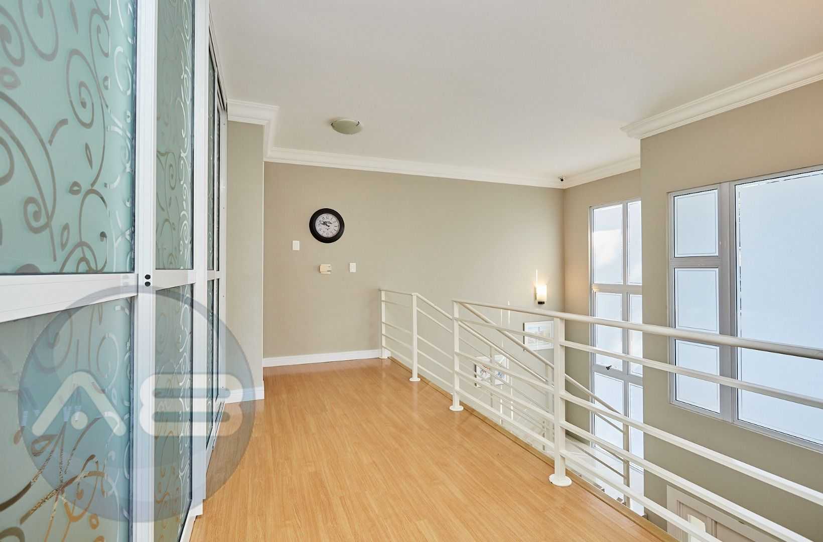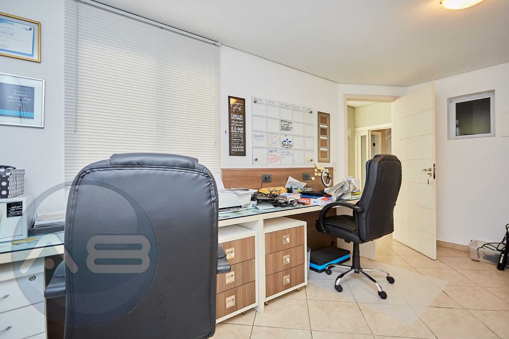 Pavimento superior sofisticado: mezanino multifuncional, home office com vista panorâmica e três suítes com sacada.