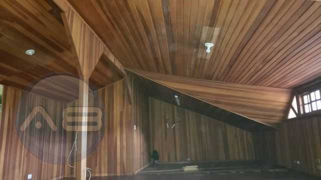 Sótão com revestimento em madeira, proporcionando um ambiente exclusivo e vista privilegiada para a avenida