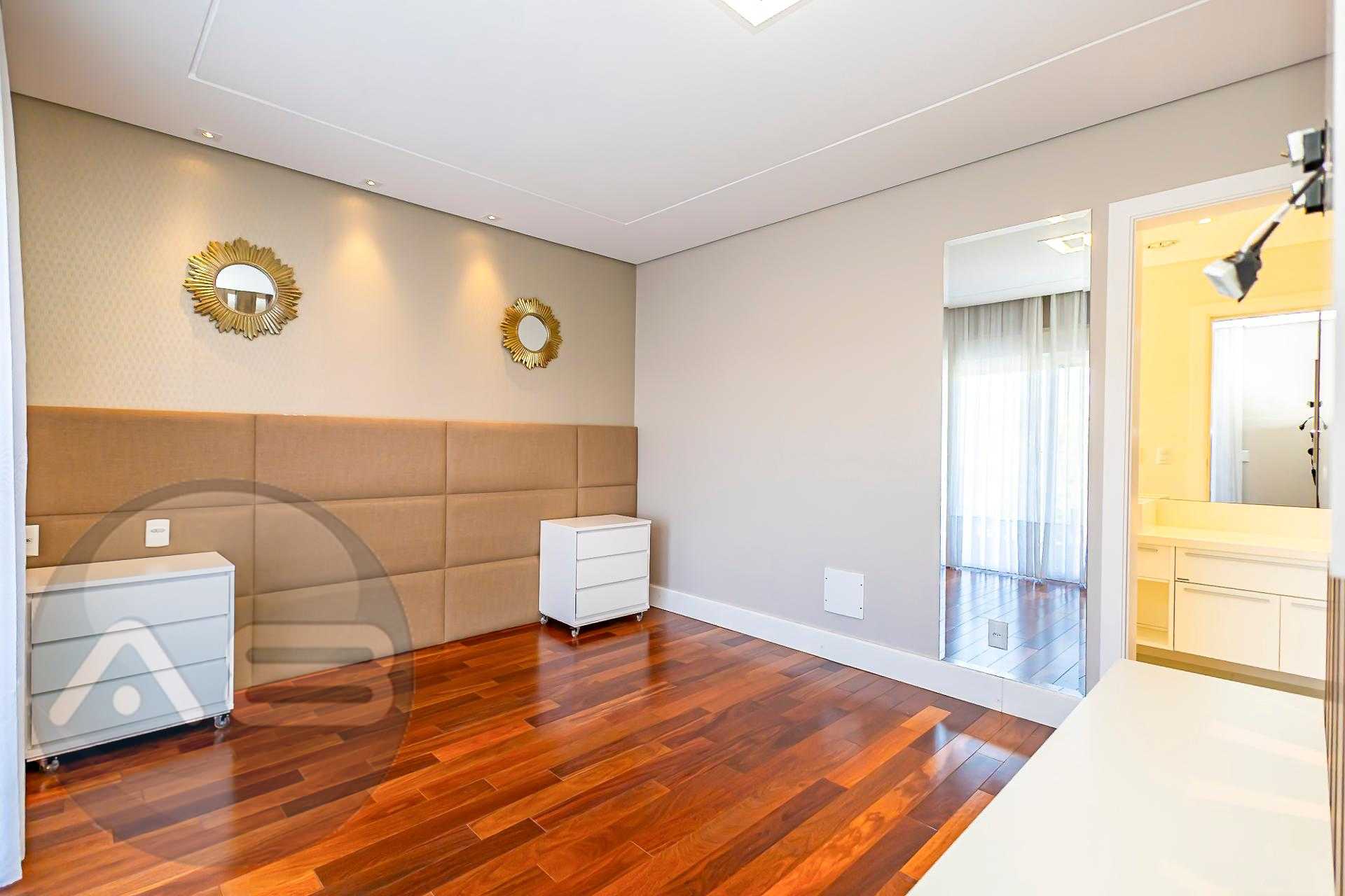 No piso superior, encontram-se 4 amplas suítes, todas climatizadas. A suíte master oferece closet e banheiro com pias e duchas duplas. O mezanino, com sua charmosa lareira, torna-se um ambiente íntimo perfeito para relaxar, com vista para o verde.