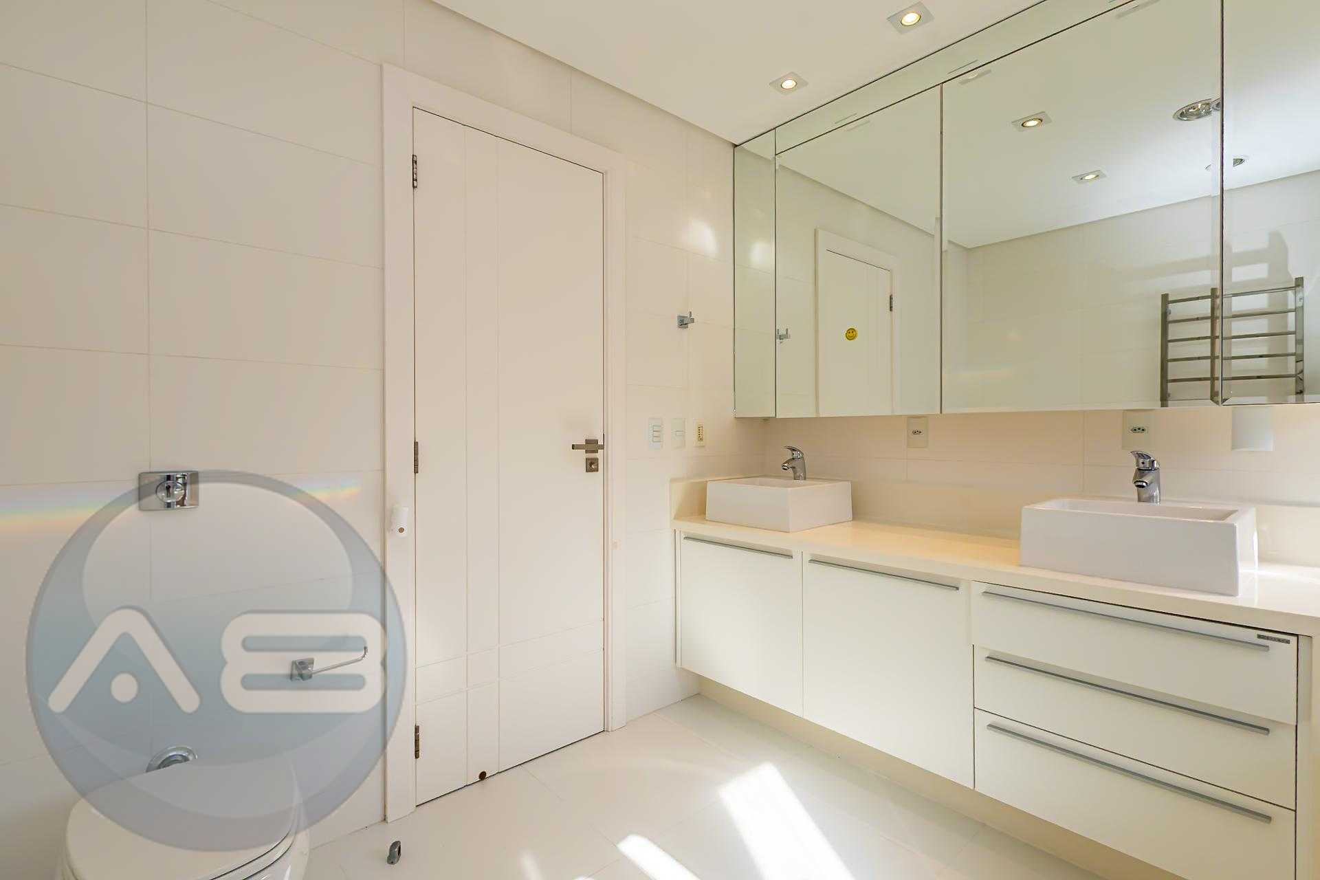 Ainda no térreo, há um lavabo e um dormitório climatizado, versátil para home office ou hóspedes.