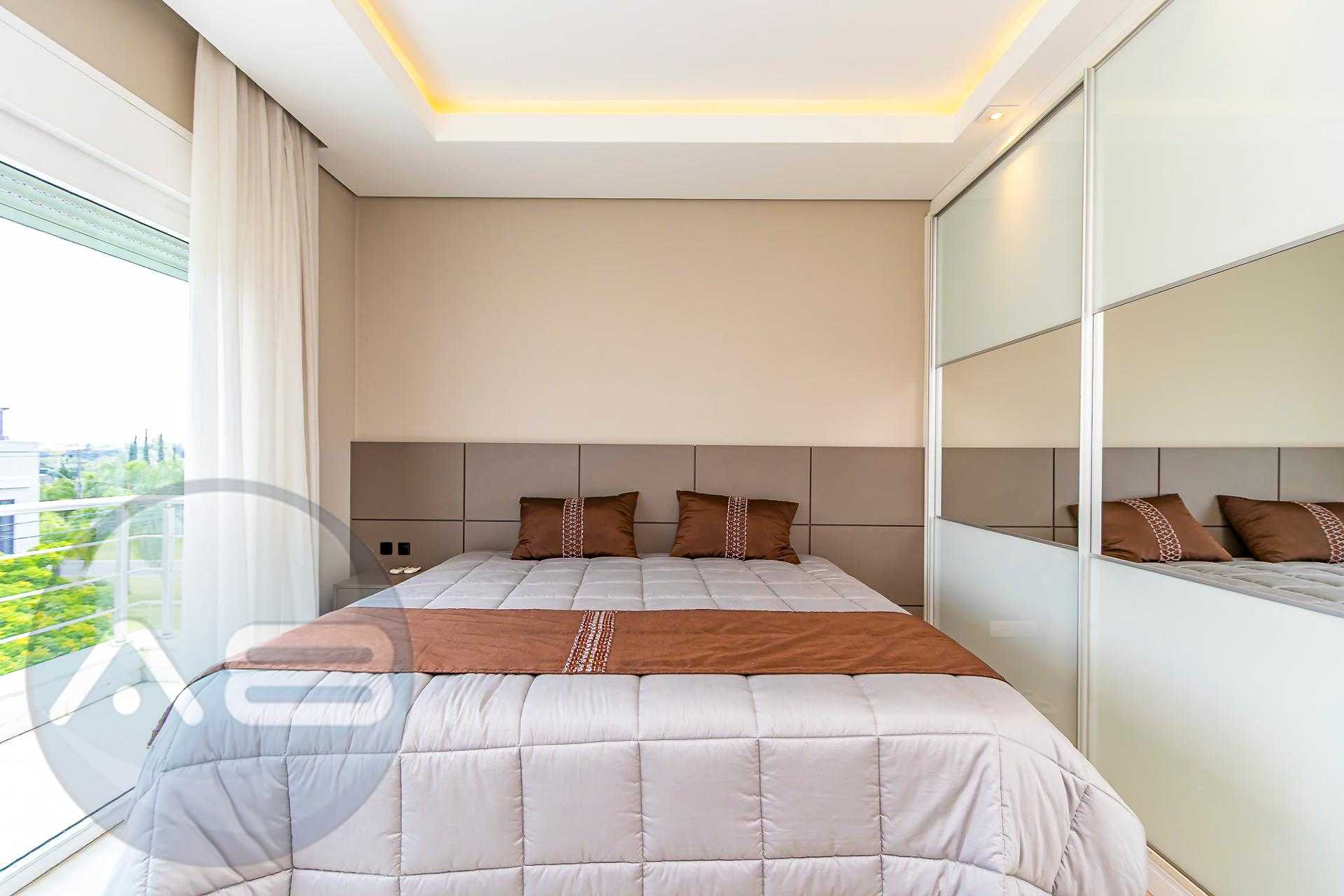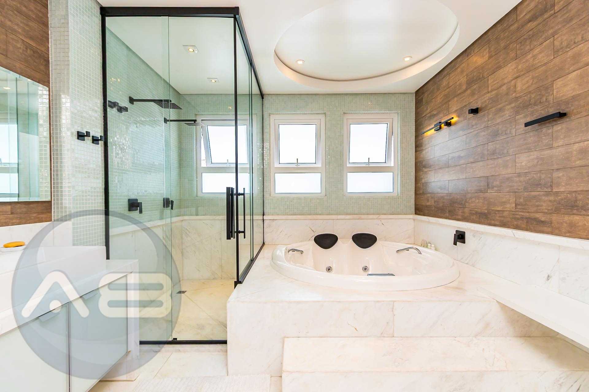 São 4 suítes generosas, todas acompanhadas por banheiros revestidos em mármore grego branco Carrara, traduzindo atemporalidade e requinte. O living social impressiona pelo pé-direito de 7 metros, lareira e integração entre estar e jantar, com acabamento nobre em mármore Crema Marfil espanhol, presente também na escada.