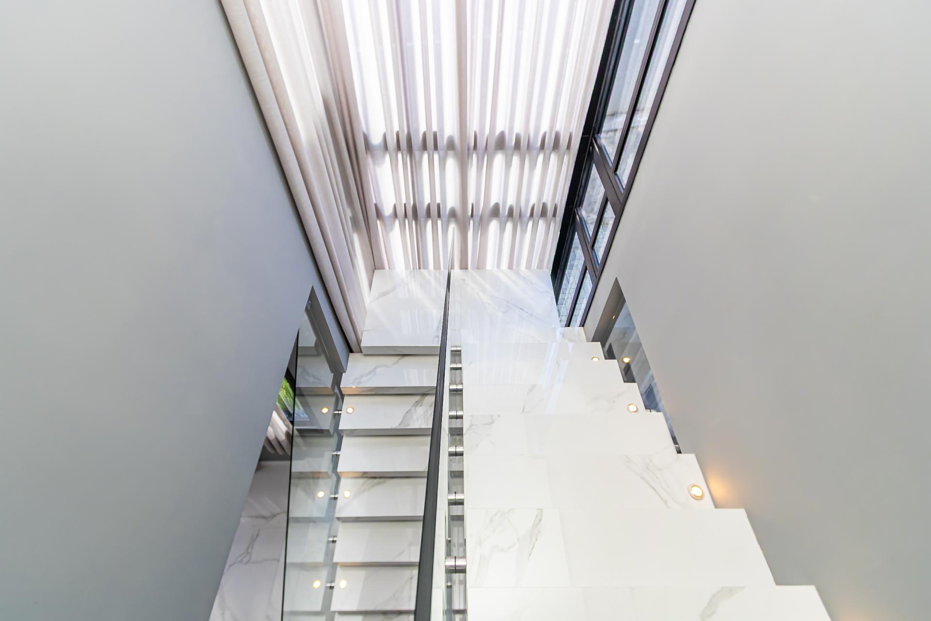 Distribuída em três níveis, a casa foi planejada com fluxos independentes entre os espaços sociais e as suítes, garantindo praticidade no dia a dia e mais privacidade aos moradores.