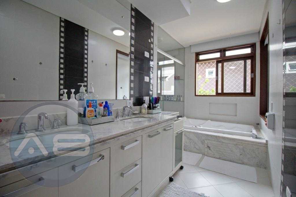- Suíte master com sacada, banheira, Cuba dupla, closet com armários
