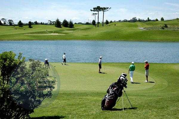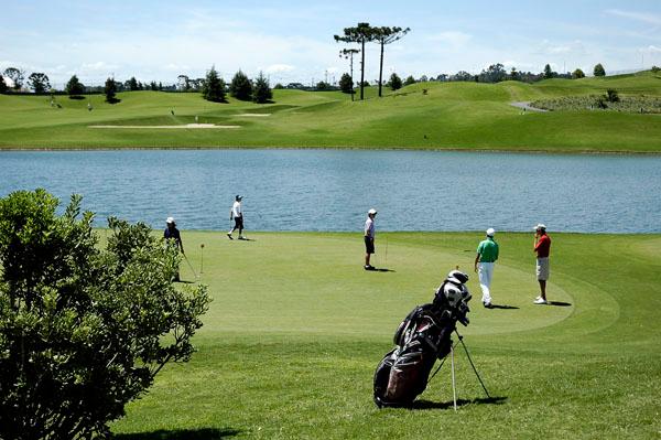 Campo de golfe profissional com 18 buracos, considerado um dos melhores do Brasil
