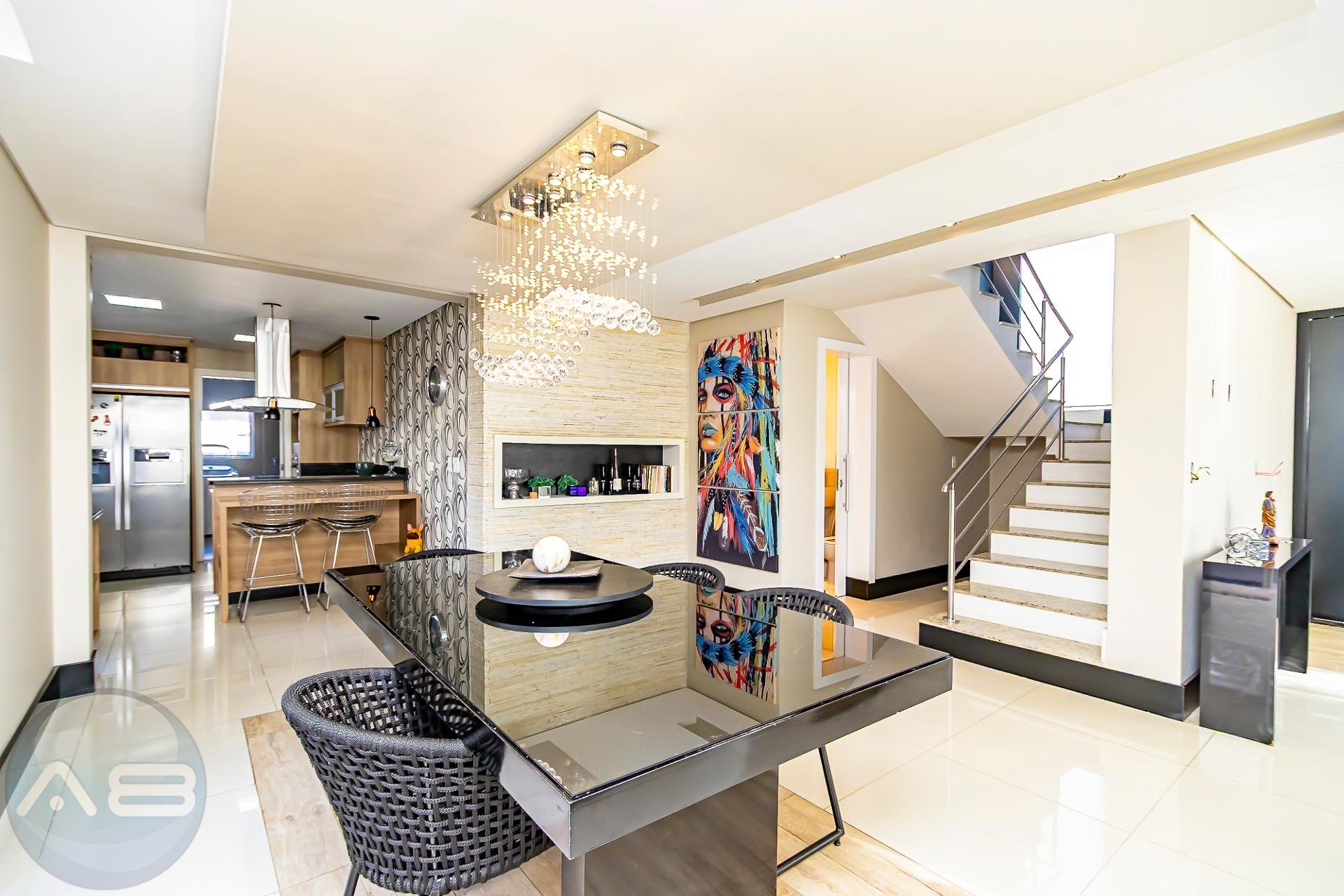 Amplitude: Pé direito alto (ou duplo) e ambientes totalmente integrados.