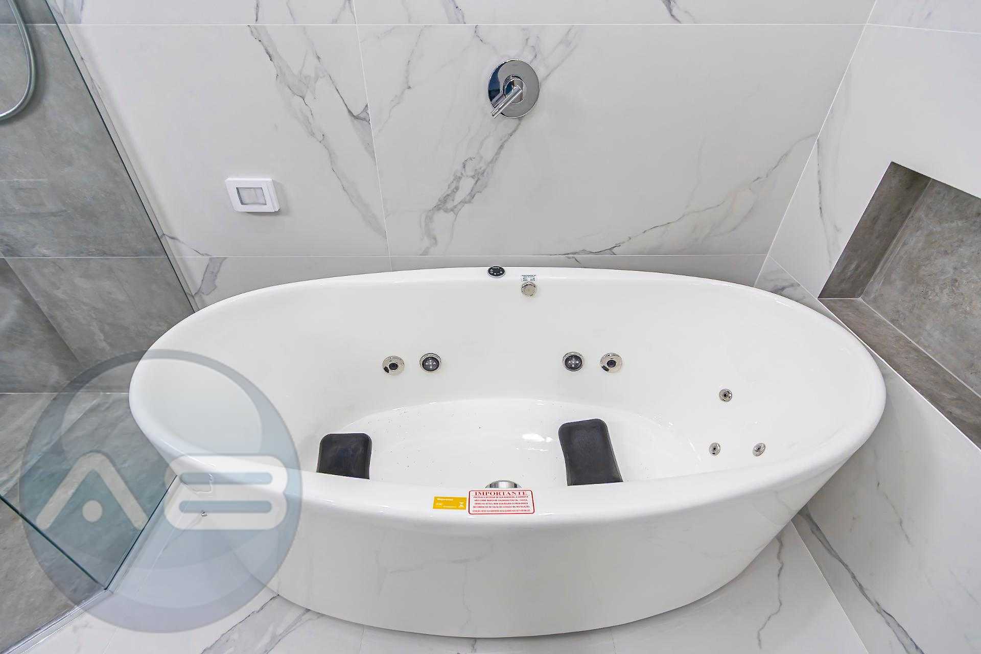 1 Suíte Master com closet, banheira de imersão e chuveiro duplo.
