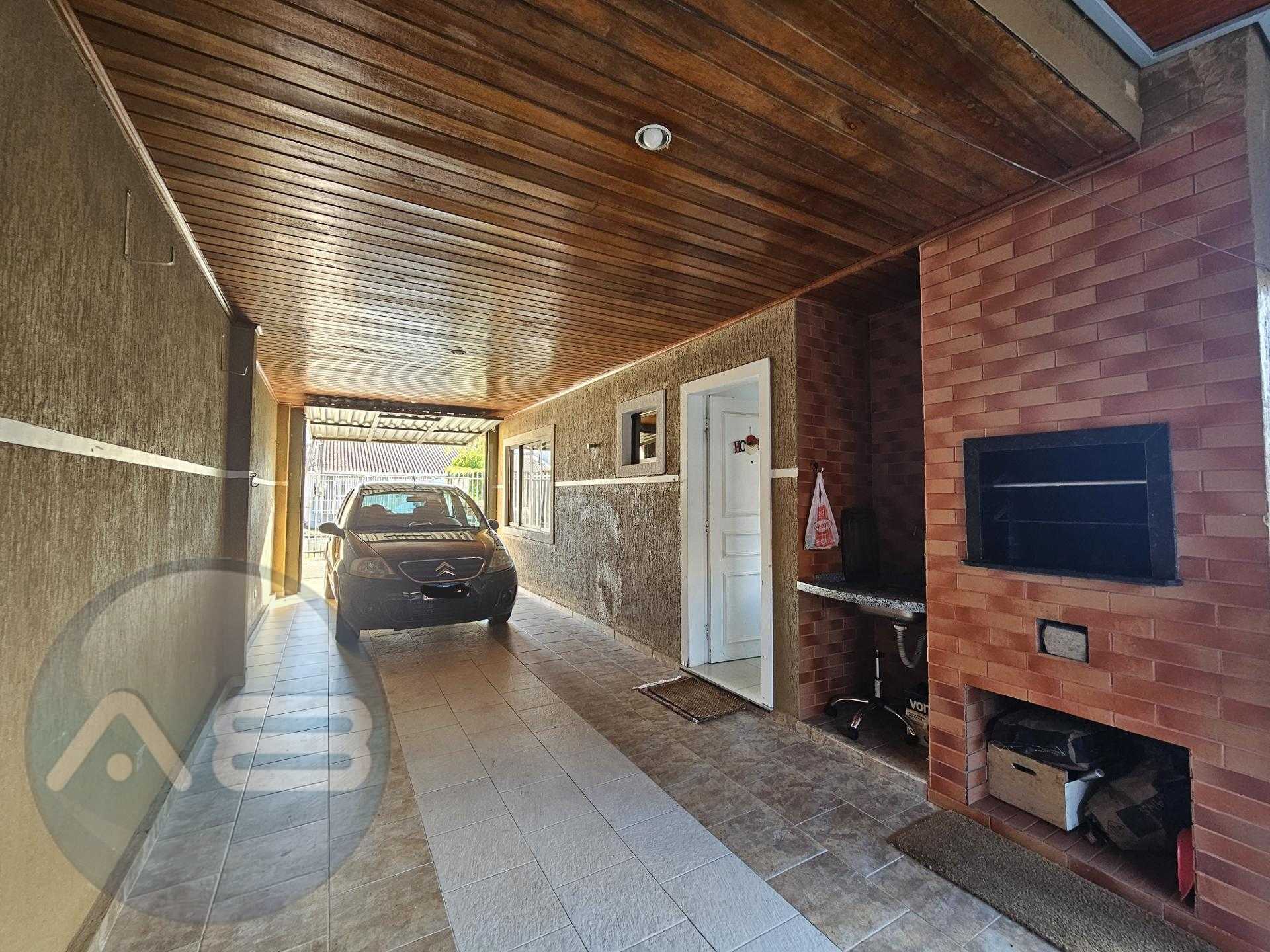 Churrasqueira anexa a garagem e cozinha em área coberta, facilitando a integração com o espaço externo e cozinha.