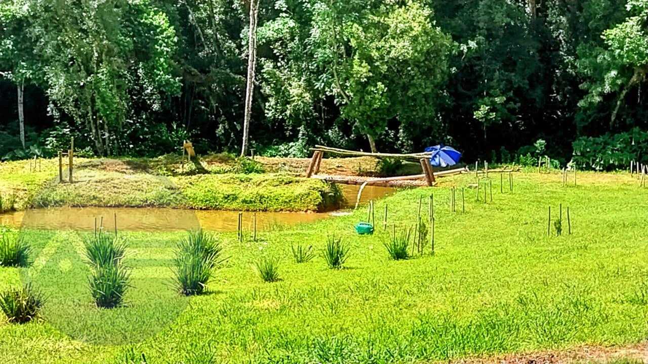 São 20.000m² de terreno, com grande parte limpa e uma reserva de mata natural contornada por um córrego que percorre grande extensão da propriedade, trazendo ar puro e frescor. Ainda conta com um tanque para peixes e área com nascente para formação de novos tanques.