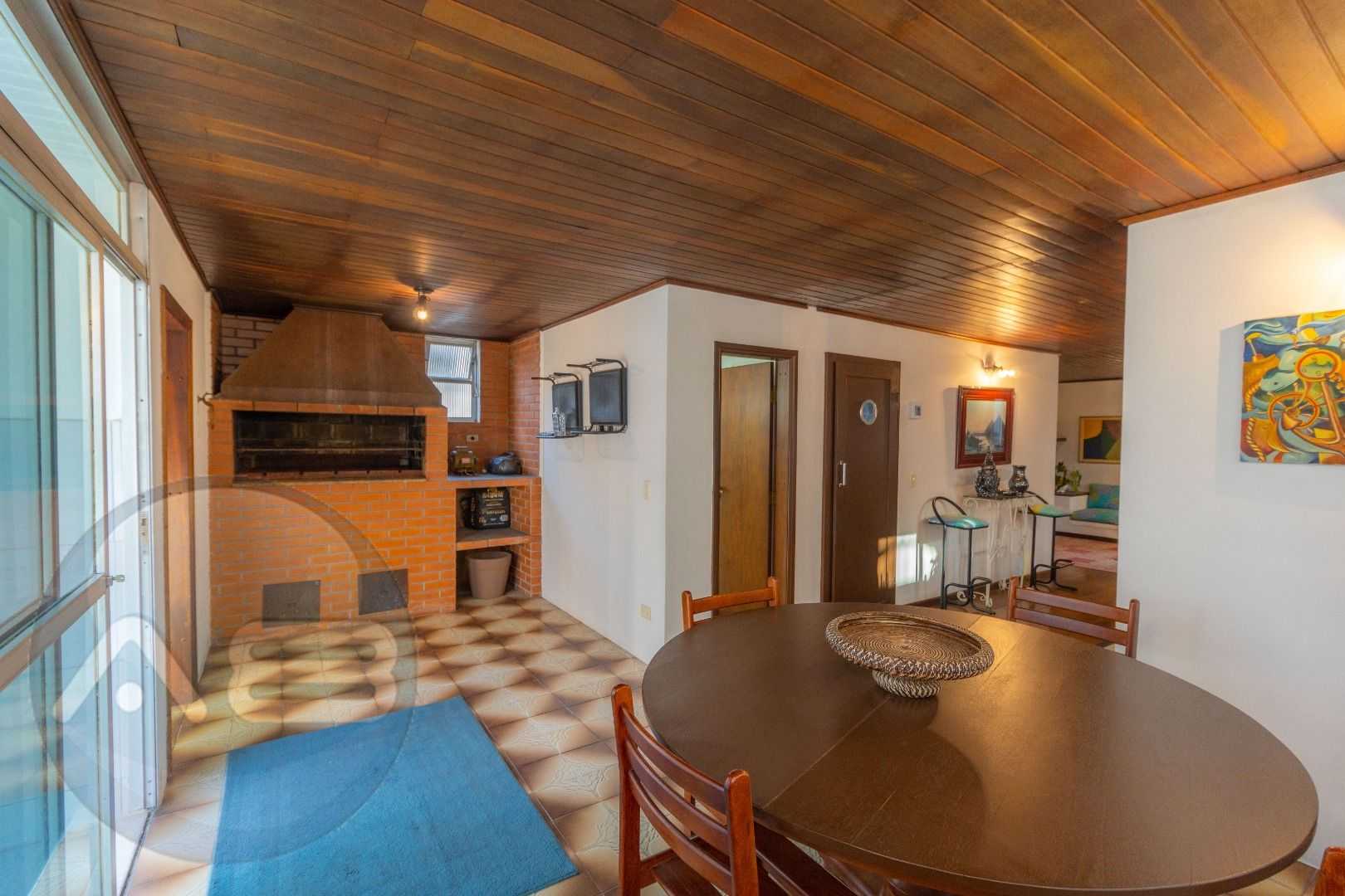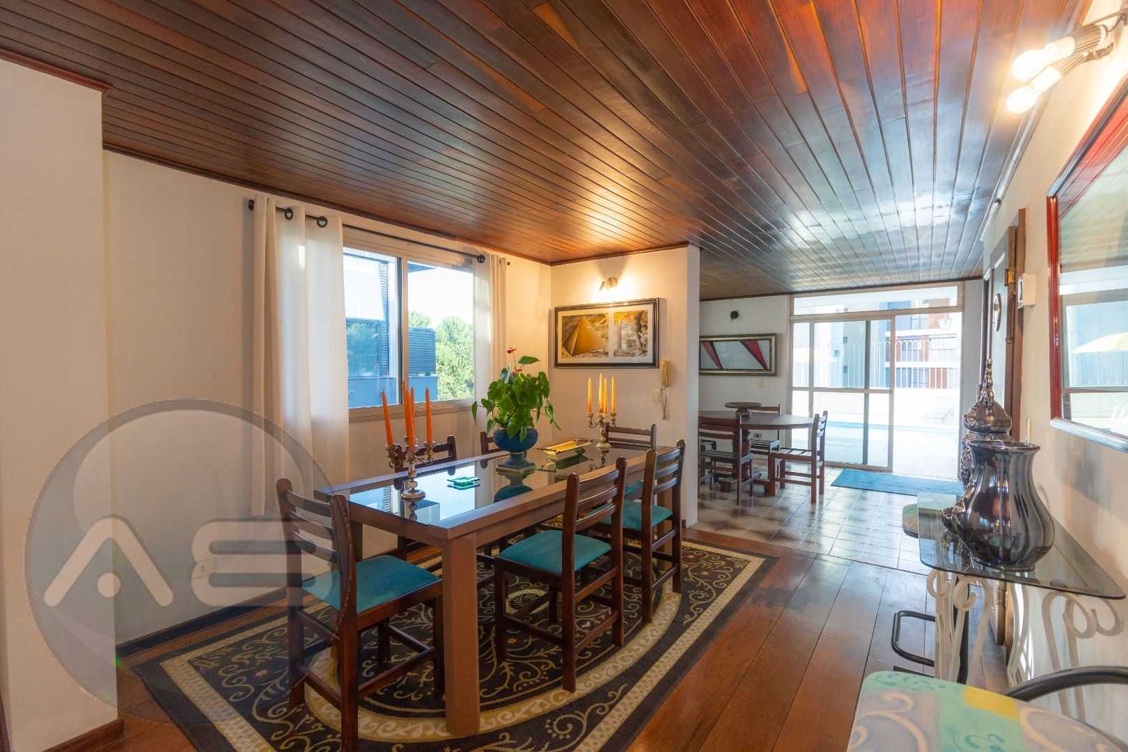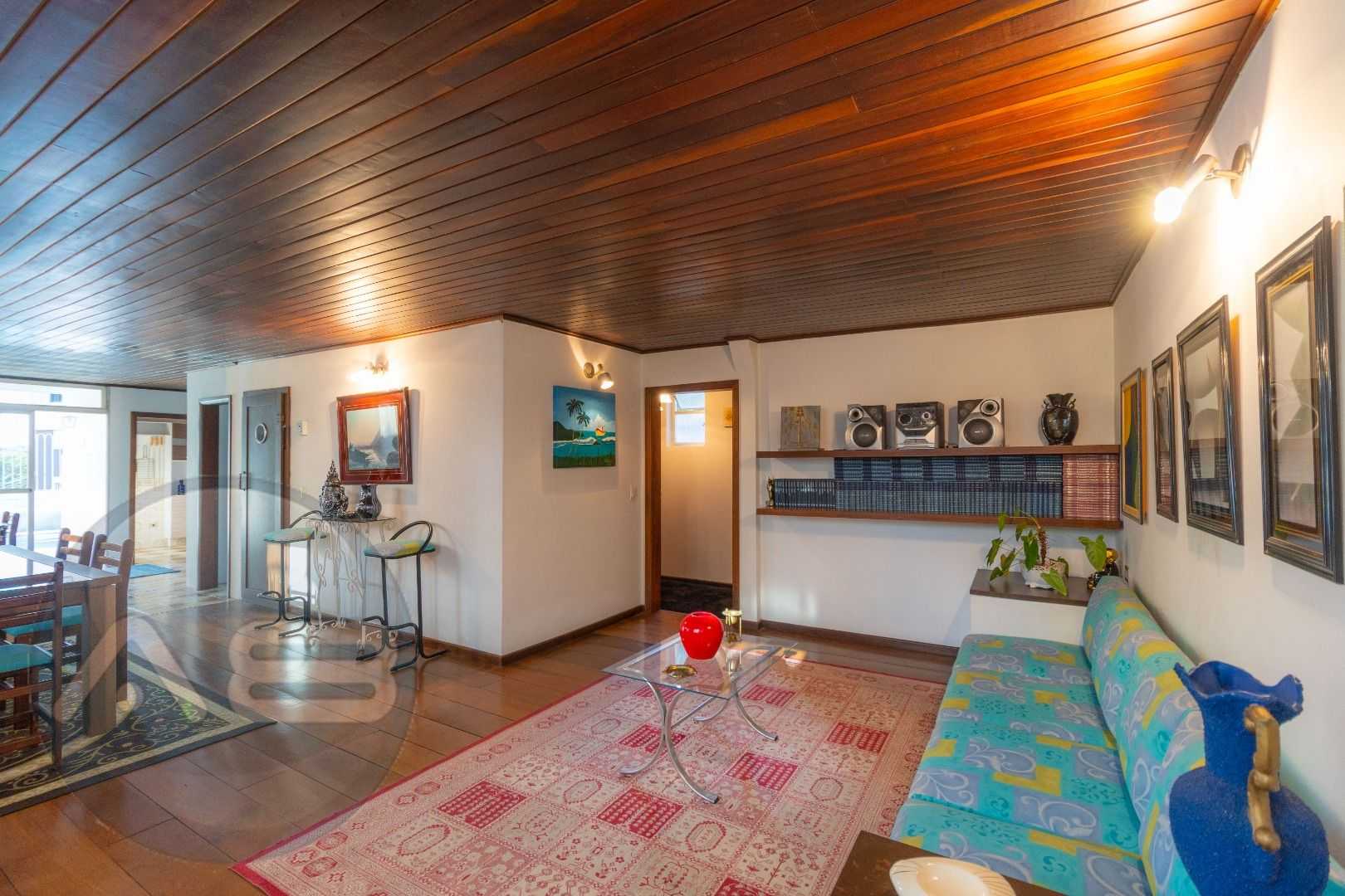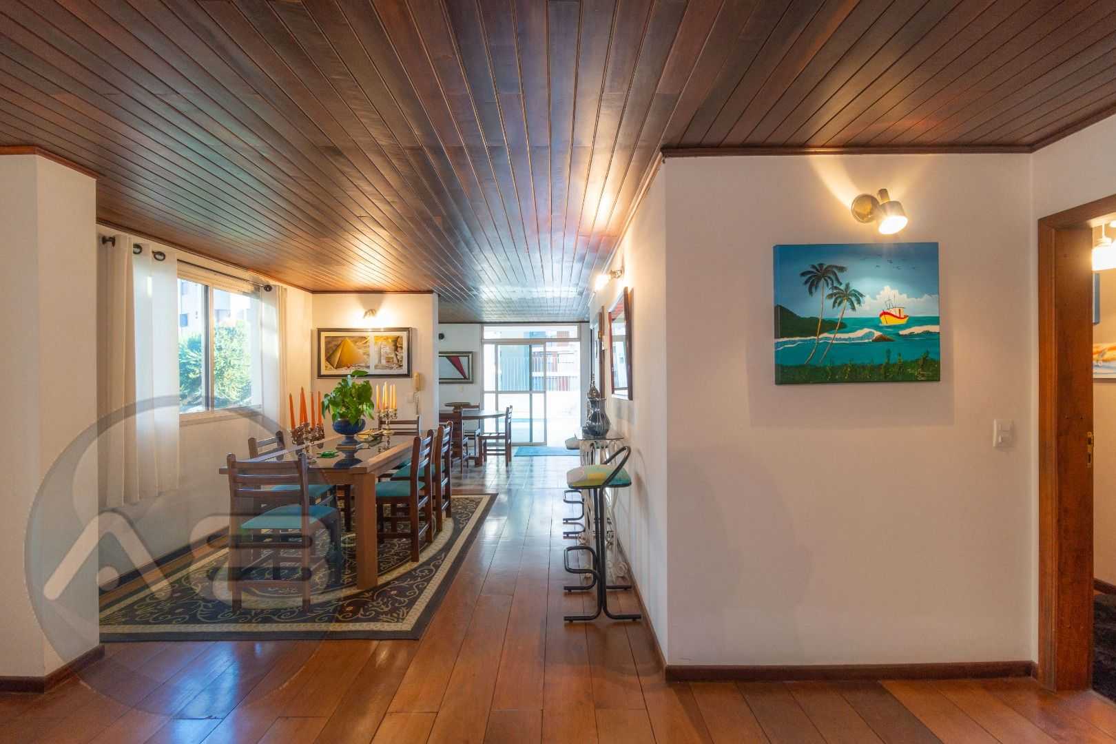 Quatro salas integradas: sala de estar, sala de TV, sala de jantar e copa ao lado da cozinha.