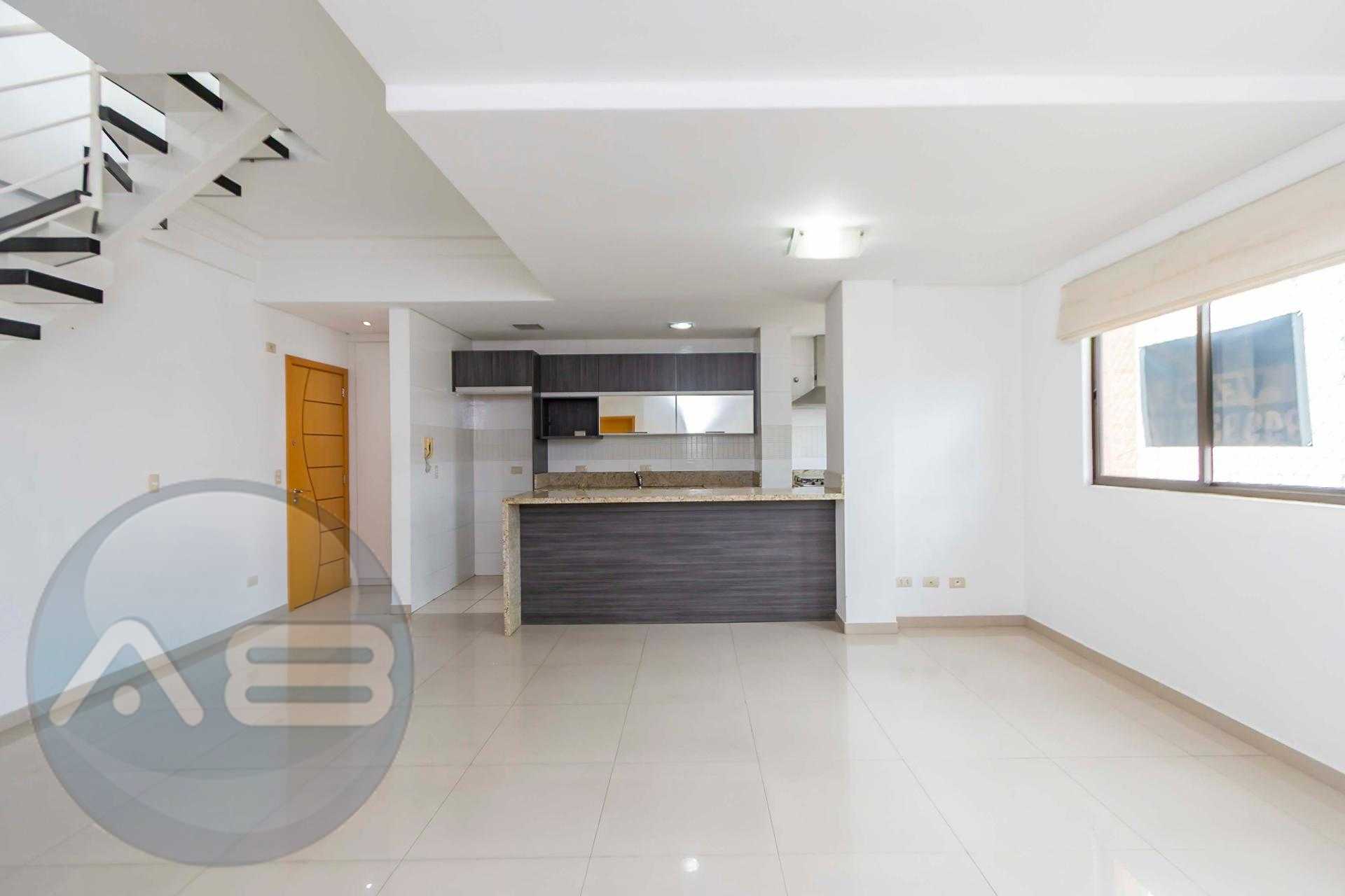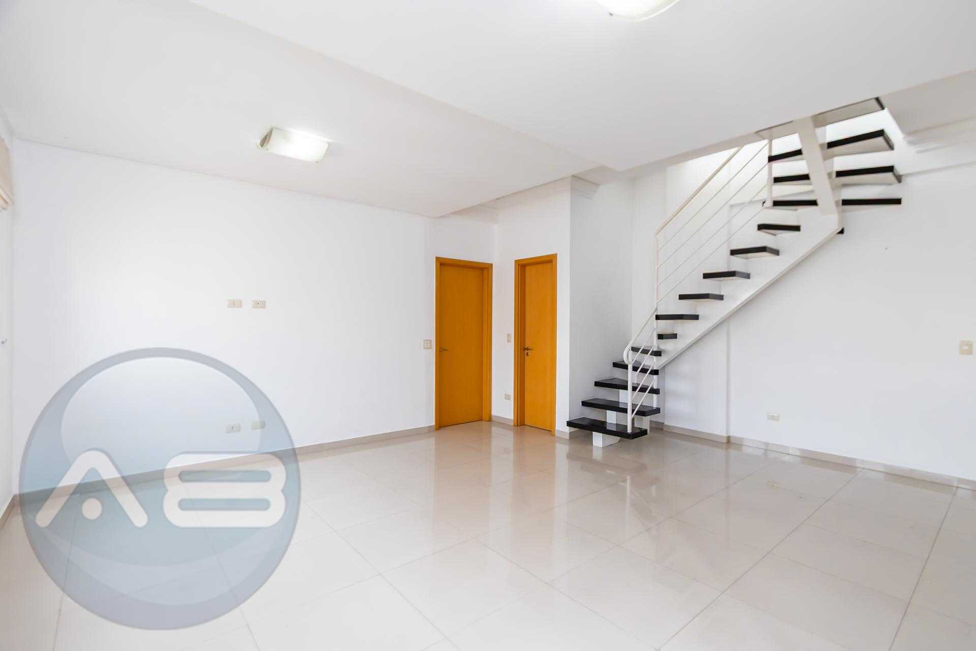 Duplex om 2 dormitórios, sendo a suíte (com amplo closet) no pavimento inferior, e o segundo quarto (que pode ser um Office) no pavimento superior.