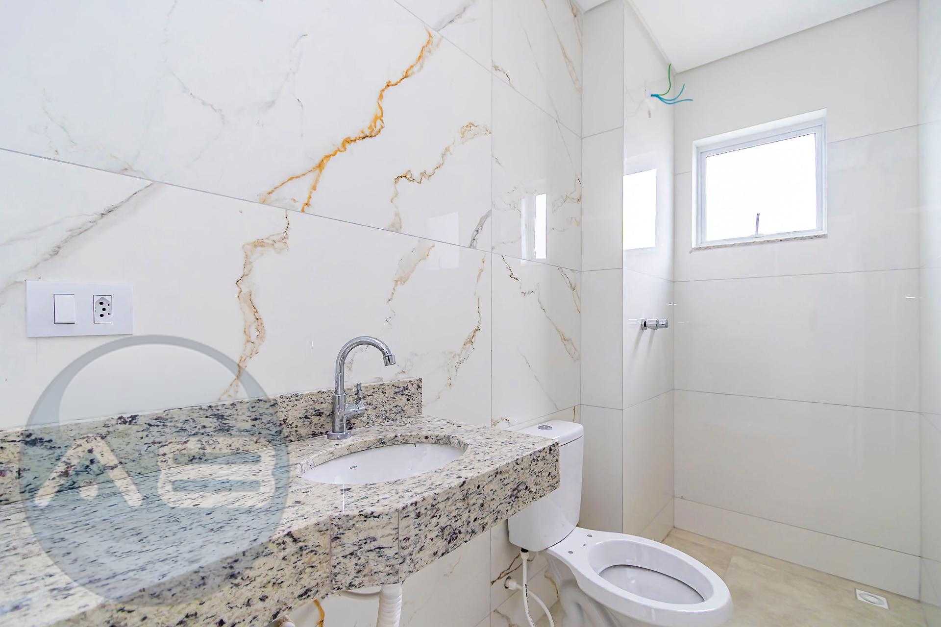 Primeiro Pavimento: Sala para dois ambientes (estar/TV e jantar), cozinha com bancada em pedra e banheiro social.