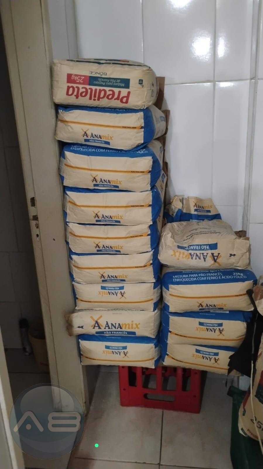 Aproximadamente 25 sacos de farinha de trigo