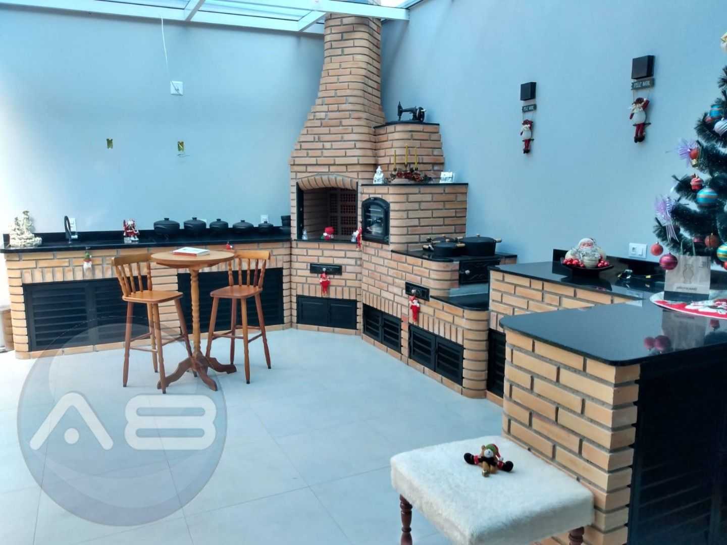 Cozinha e área gourmet: Cozinha estilo americana moderna e funcional. Área gourmet completa com churrasqueira, coberta com acrílico e vidro, perfeita para confraternizações em qualquer clima.
