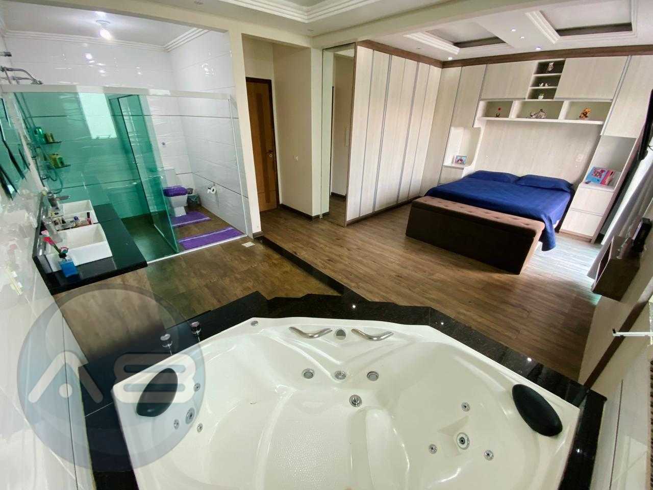 Suíte master de 35 m², espaçosa e elegante, equipada com banheira, perfeita para relaxar após um longo dia.