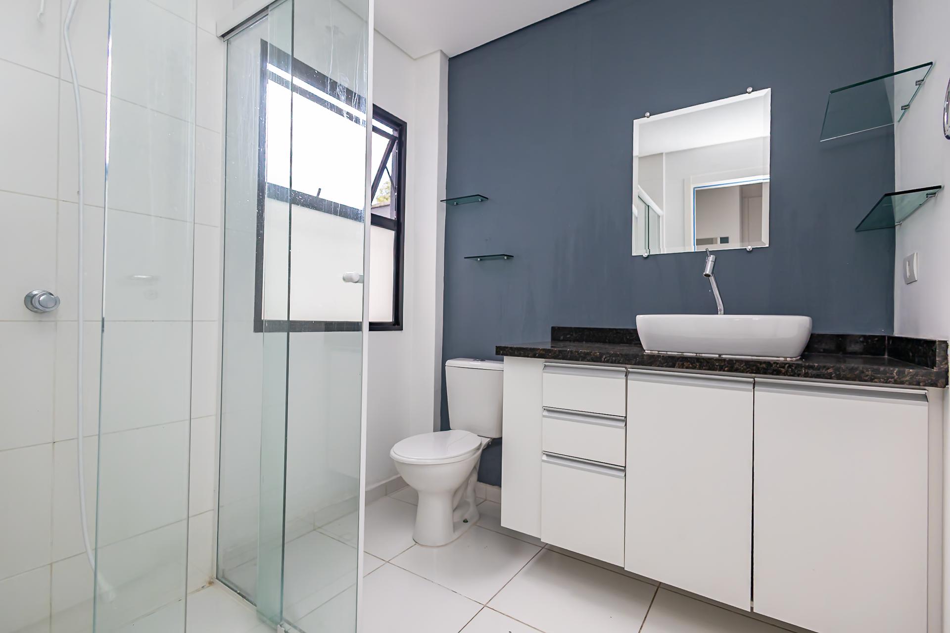 - Banheiro completo com box em vidro.