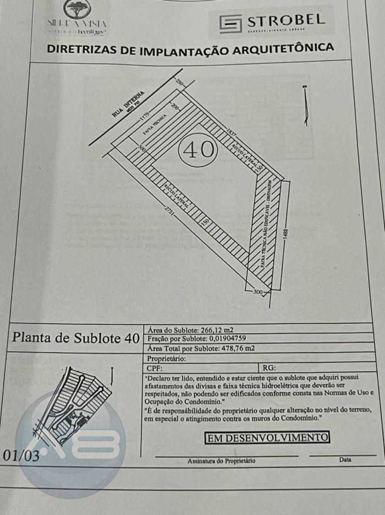 Condomínio Sierra Vista - Bairro Atuba, lote 40, com área total de 478,6 m² e área de sublote de 266,12 m²e, localização interna diferenciada. ENTREGA PREVISTA PARA DEZ/23Um Condomínio Parque para 46 famílias, implantado em uma antiga pedreira de rara beleza natural, valorizando a vegetação nativa e a vista para a Serra do Mar.O empreendimento foi concebido com áreas de convivência e lazer diferenciadas, explorando as características únicas da topografia.O Grill próximo a quadra poliesportiva é informal, o Sports Bar é o espaço ideal para o happy hour e o Salão de Festas com a sua praça externa, o local ideal para as comemorações com amigos e família.Além dos espaços ao ar livre, como a pracinha com lareira junto a um paredão de pedra, a trilha que passa pelo pomar, o playground , o lago com sua ponte e o lounge externo ideais para momentos de diversão e o contato com a natureza. Os moradores ainda contam com a academia com vista panorâmica .O condomínio fica ao lado do Parque da Pedreira , próximo a linha verde e a poucos minutos do centro de Curitiba. Invista no lazer e segurança de sua família, venha conhecer.# Valor sujeito a alteração sem aviso prévio.